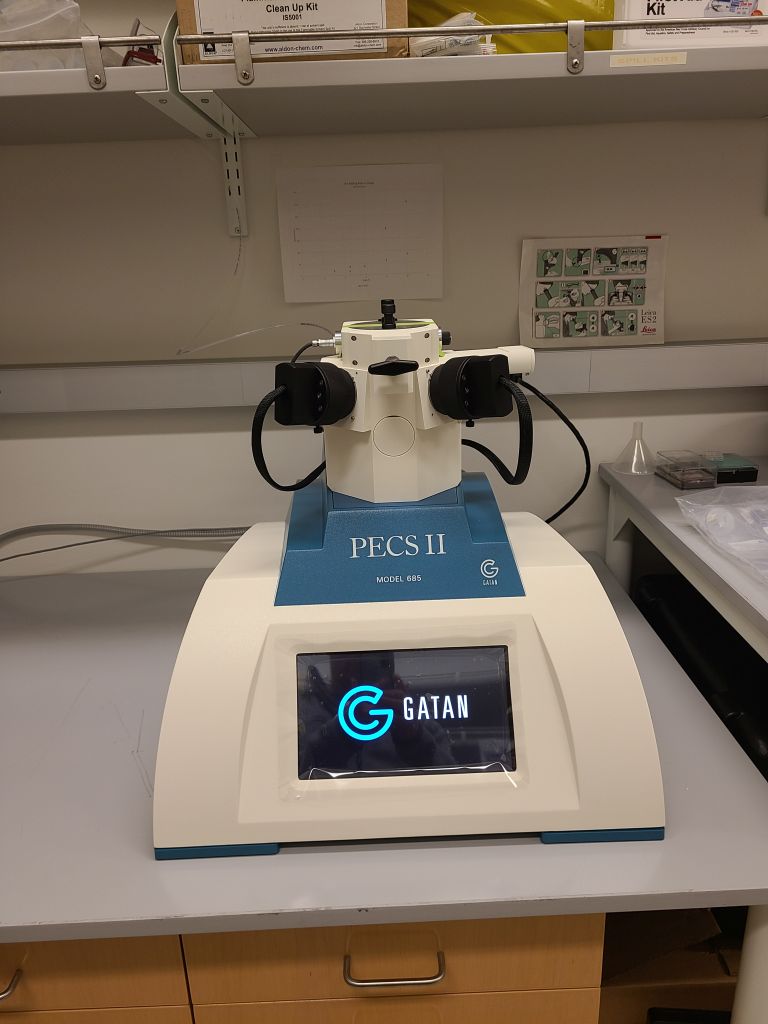 Samples must be compatible with a chamber vacuum of 10-6 mBar. Planar polishing requires that samples are flat and have a maximum diagonal dimension of 25mm. Cross-section samples are limited to 9mm width (5mm is best.) The cross-sectional edge should be roughly polished prior to milling and the ion polish is localized to 1mm near the center of the fracture.