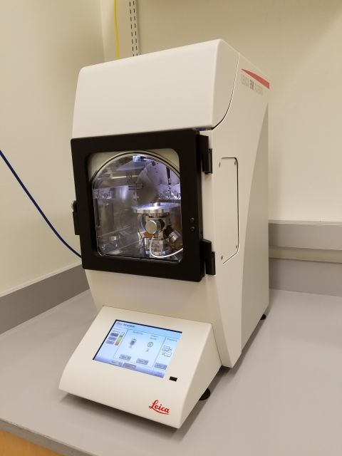 The Leica ACE600 is a high vacuum thin film deposition instrument for FE-SEM and TEM sample preparation. It can produce carbon films as thin as 1.4nm or deposit fine-grained metal films to improve e-beam analysis of non-electrically conductive samples. It can also be used to glow discharge TEM grids. This is not a fabrication tool and cannot be used to produce films over 20 nm of thickness.