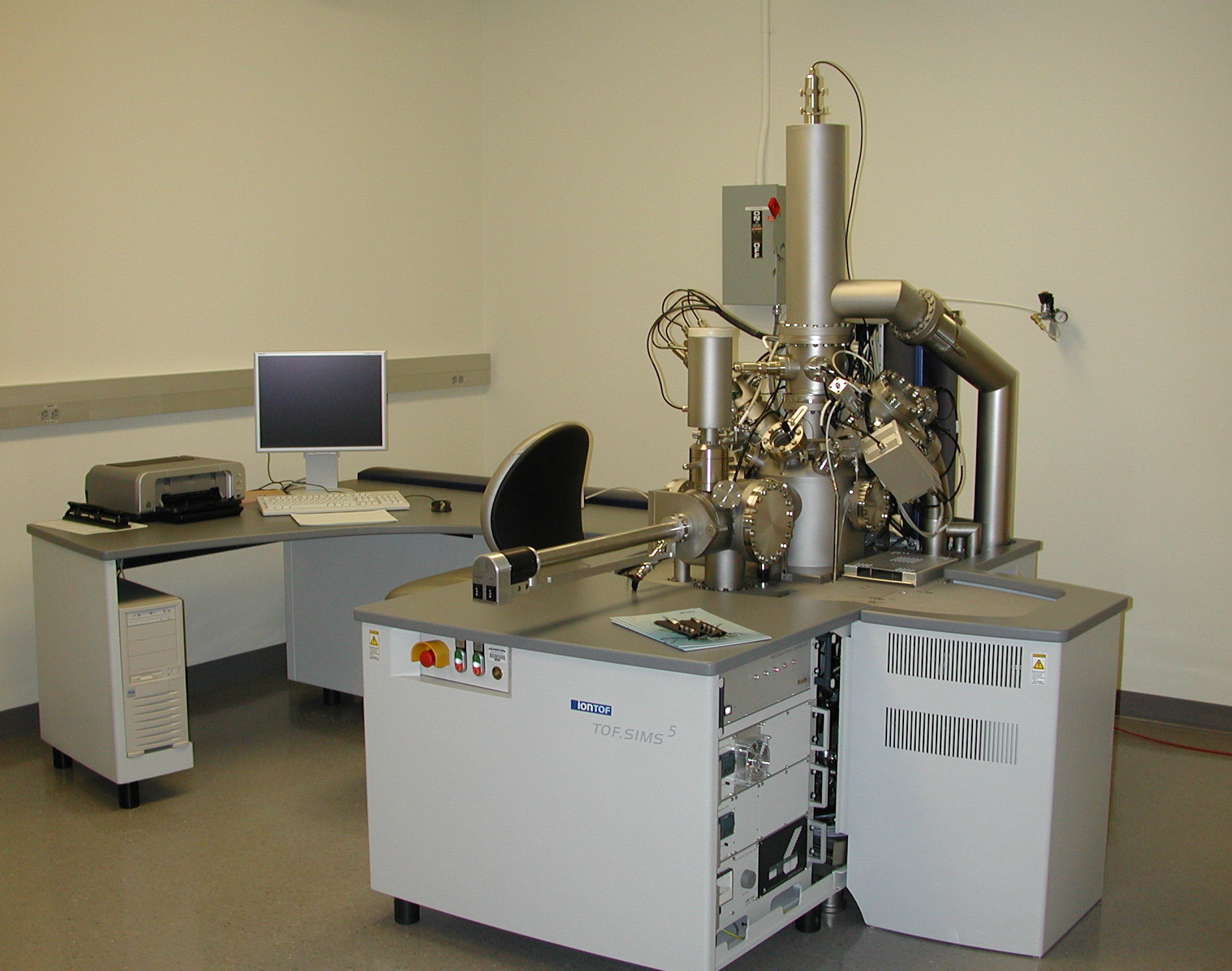ToF-SIMS is a surface analytical method that provides chemically specific information about the upper 1-2 nm of a surface. The IONTOF TOF.SIMS 5 is capable of producing high mass resolution spectra (m/detlaM ~ 6000-10000) and high spatial resolution images (< 1 micron edge resolution) of any surface that can be placed in an ultra high vacuum environment. The TOF.SIMS 5 also has a gas cluster ion beam (GCIB) for sputtering which enables depth profiling of organic materials, perovskites, and some oxides.