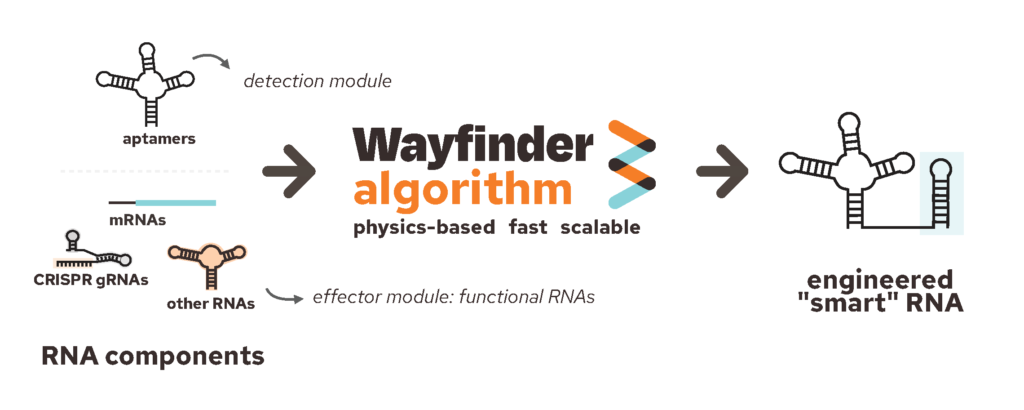 Another application Fontana and Sparkman-Yager are particularly excited about is CRISPR . CRISPR-based therapies use what's known as guide RNAs to direct DNA cutting enzymes to remove and repair specific sequences of DNA in the cell. These therapies have come a long way since CRISPR was first used to edit genes in mammalian cells in 2013, but are still hindered by low specificity and off-target effects. The Wayfinder team is working on developing RNA sensors that can turn CRISPR on and off in response to changes in the local environment.